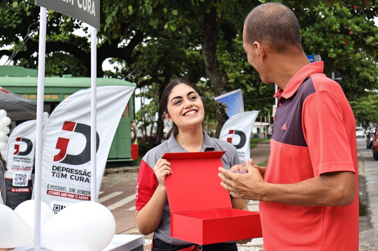 Durante a ação, Agentes do bem estiveram no local montando um ponto de socorro emocional, um ambiente de escuta ativa, acolhimento e conversa sem julgamento, criado para quem está cansado de fingir que está tudo bem.