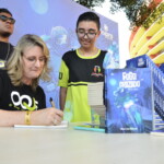 Também às portas do ginásio, a escritora Méuri Luiza marcou presença na sessão de autógrafos do lançamento da parte dois do livro Fogo Cruzado, que, desta vez, volta no tempo e conta as origens dos conflitos vividos pelos personagens principais, Benni e Susan.