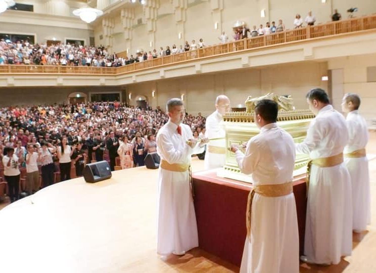 Uma cerimônia marcada por momentos de muita fé. Assim foi a chegada da Arca da Aliança, recentemente, ao Japão. Mais de 1700 pessoas se reuniram para recebê-la no Concert Hall do Act City, um centro de convenções localizado no centro da cidade de Hamamatsu, província de Shizuoka. A cidade tem a maior concentração de brasileiros no país.