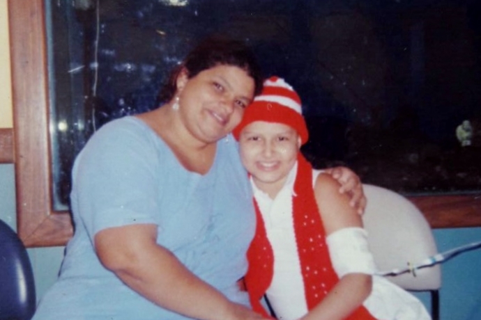 “Na época da quimioterapia me dava muita mucosite (uma espécie de afta na boca e na garganta), o que me impedia até mesmo de falar ou mesmo me alimentar; fora os enjoos, que eram constantes. Foi um período muito difícil. Muitas crianças que estavam ali se tratando comigo morreram do meu lado. Mas, apesar de o mal tentar minar a nossa fé, minha mãe e eu (foto abaixo) íamos na contramão da situação: orávamos mais e mais, a fim de combater todas as dúvidas que surgiam dia após dia”, conta ela.