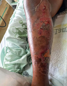 Depois de alguns dias, a situação se agravou. No início de 2024, os exames confirmaram uma infecção por erisipela. “Quando a médica olhou, ela não me deu boas notícias. Ela disse que se eu tivesse fé era para orar para conseguir sair de lá com a minha perna, pois a previsão era a amputação da minha perna”, relembra.