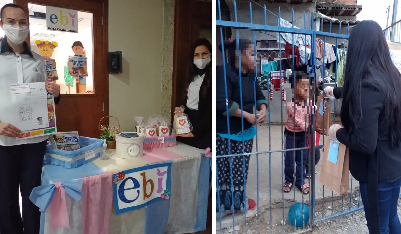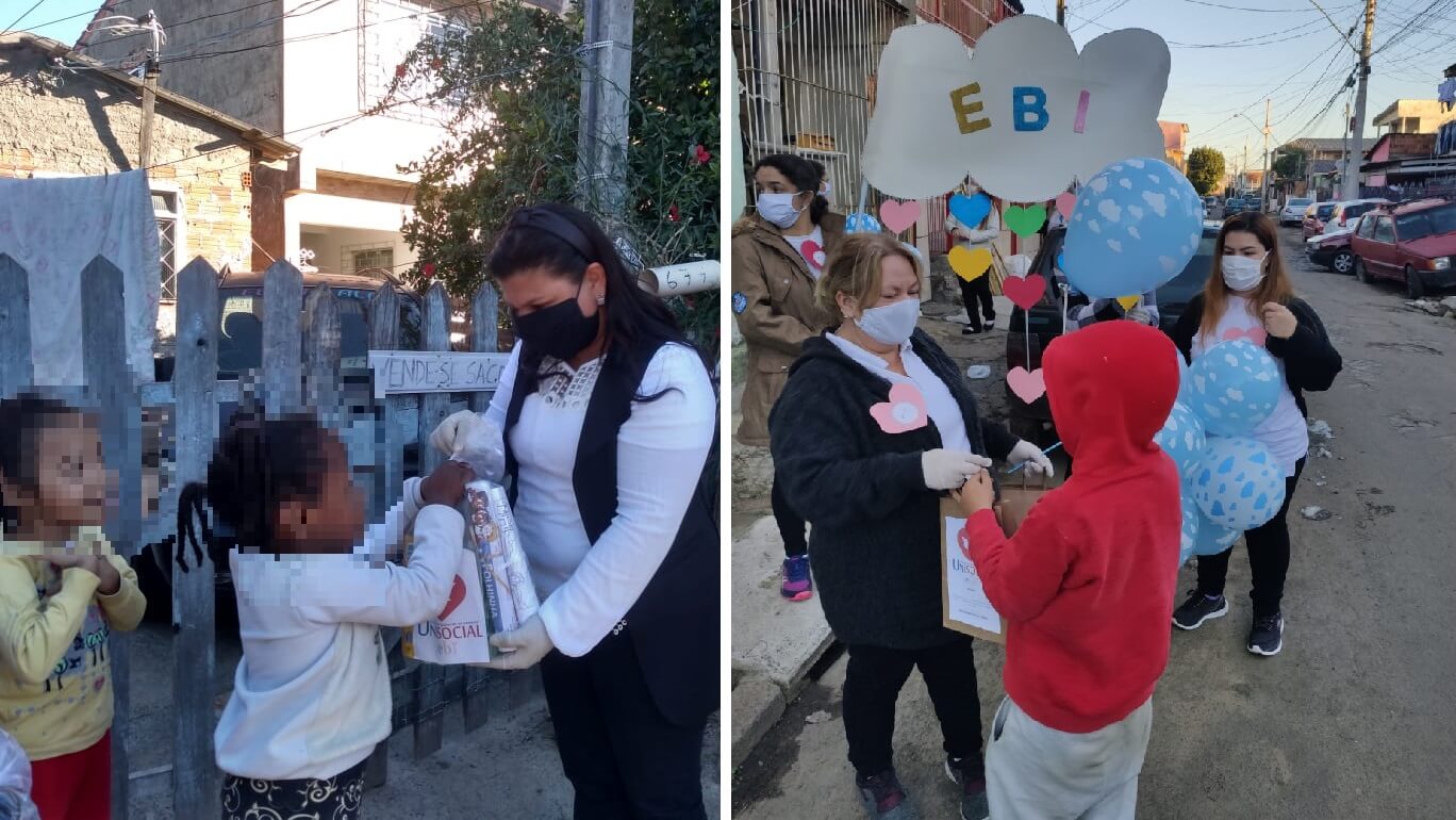 Voluntárias da Escola Bíblica Infantil (EBI) do Rio Grande do Sul, além de pensar no bem-estar das crianças, estão também cuidando dos pais e de toda a família dos pequenos, durante a pandemia do novo coronavírus. Desde abril, esposas e educadoras realizam ações sociais que incluem a entrega de cestas de alimentos, colchões, roupas infantis e fraldas nas residências. Ademais, em alguns casos, quando necessário, levaram também apoio médico.