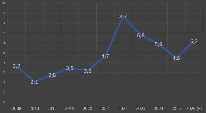 • Inflação: a expectativa é de que a inflação global suba para 4,4%, impulsionada pelos custos de energia e fertilizantes.