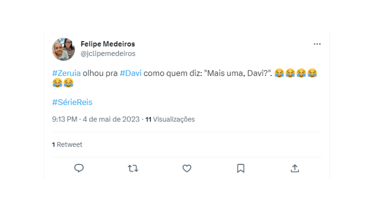 A cena em que Davi, interpretado pelo ator Cirillo Luna, interage com Hagite foi bastante comentada no Twitter. Veja alguns comentários abaixo: