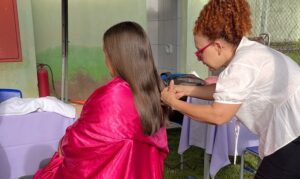 • Também foram disponibilizados cuidados estéticos, como serviços de cabeleireiro, com o objetivo de fortalecer a autoestima das participantes.