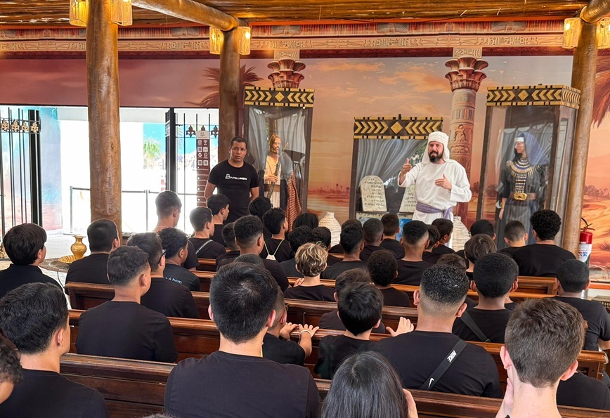 E para reforçar esse compromisso, no dia 8 de fevereiro, um grupo de cadetes realizou, pela primeira vez, o Tour ao Jardim Bíblico do Templo de Salomão. A visita, que recria por meio de réplicas cenários marcantes do Antigo Testamento, os transportou para uma imersão na história da fé ao oferecer uma jornada temática pela Terra Santa e pelos principais eventos narrados nas Escrituras.