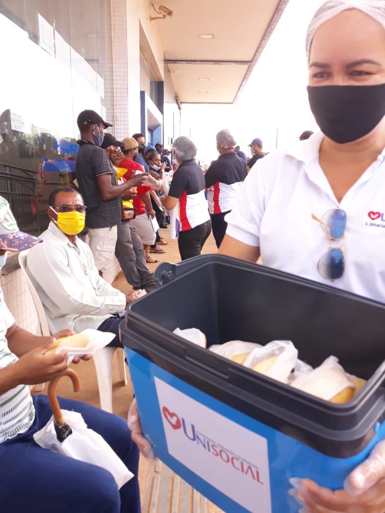 Pessoas que aguardavam o benefício em fila de banco receberam refeição de voluntários da Universal