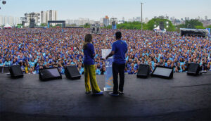 São Paulo foi o ponto de encontro principal. Mesmo com o céu nublado e a previsão de chuva, casais e solteiros, determinados a investir em seus relacionamentos, compareceram ao Parque Villa-Lobos, na zona oeste da capital. Já às 9h da manhã, mais de 20 mil pessoas se reuniam em frente ao grande palco montado próximo à Roda Rico – a maior roda-gigante da América Latina – aguardando as atrações e os aprendizados programados. E a presença valeu a pena: mais tarde, todos foram surpreendidos por um clima estável e ensolarado, que favoreceu a caminhada a dois pelo extenso campo arborizado do parque.