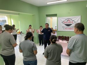 Nos dias 10 e 17 de agosto, uma ação realizada pelos voluntários do programa social Universal Socioeducativo (USE) alcançou dezenas de colaboradores da Unidade Feminina Aldaci Barbosa, uma unidade socioeducativa para adolescentes em conflito com a lei, localizada em Fortaleza, no estado do Ceará.