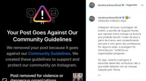 Assim como o jornalista, o escritor e apresentador do The Love School – Escola do Amor, Renato Cardoso, mostrou repúdio pela decisão. Mas ao compartilhar o vídeo de Nunes em seu Instagram, ele foi surpreendido ao ter o conteúdo censurado na rede social.