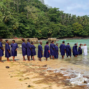 Depois da mensagem, 31 pessoas decidiram entregar as suas vidas ao Senhor Jesus por meio do batismo nas águas, que foi realizado no local. Ofelia Leal, moradora da comunidade, contou sua experiência: “me sinto agradecida com a presença de todos aqui no Ilhéu das Rolas e por tudo que está sendo feito no dia de hoje. Estou muito feliz por ouvir essa Palavra e agradeço por tudo que o Senhor falou hoje”.