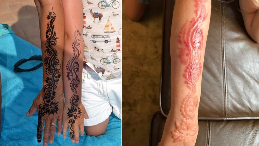 Menina de 7 anos sofre queimadura química no braço depois de fazer tatuagem de hena