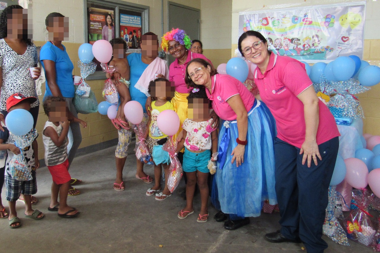 Para a alegria das 150 crianças presentes, foram distribuídos kits com brinquedos, doces, pipoca e balões. Enquanto os pequeninos brincavam, os pais recebiam orações e orientações.