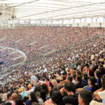 Muitos madrugaram para conseguir o melhor lugar. Após atingida a lotação máxima do estádio, os que não puderam entrar acompanharam a reunião pelos LEDs na parte externa do estádio.