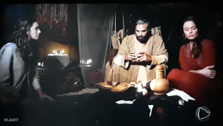 Durante as refeições, enquanto na tenda de Lia todos se sentam felizes ao redor dos alimentos, na tenda de Raquel o clima não é o mesmo. Como sempre, ela está mais preocupada com as vestimentas.