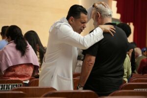 Em um momento de fé e entrega, o Bispo Jadson convidou à frente do Altar todos que desejavam se libertar das forças negativas que atuavam em suas vidas. A oração forte foi conduzida por ele e acompanhada pelos Bispos Adilson Silva e Renato Cardoso. Durante a reunião, o Bispo Renato ressaltou a importância de a pessoa agir com autoridade espiritual diante das lutas diárias.