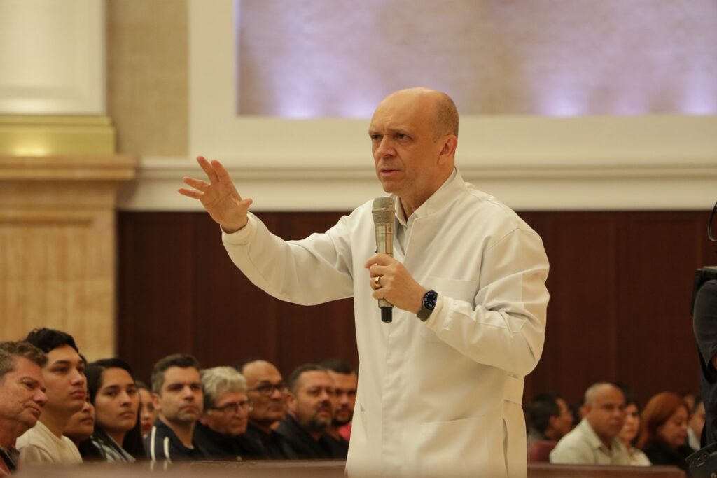 Em seguida, o Bispo Adilson Silva realizou a oração de combate contra todo o mal e, logo depois, o Bispo Renato Cardoso ensinou que para que o Altíssimo aja de forma irrestrita na vida de uma pessoa ela precisa entregar o primeiro lugar de seu coração a Ele.