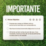 - Itens que são proibidos de entrar no estádio, como armas, objetos cortantes, bebidas alcoólicas e fogos de artifício.