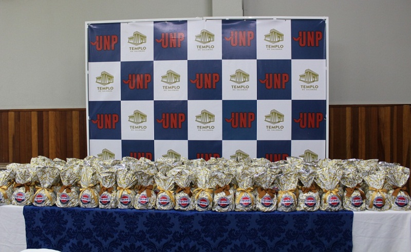 Depois, eles participaram da reunião no Templo de Salomão e, em seguida, ganharam panetones e fizeram um lanche preparado especialmente para eles.