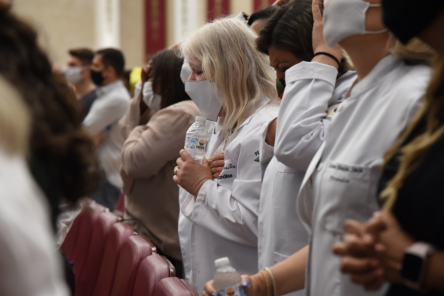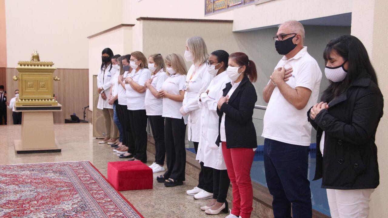 “Eu sei que não há um reconhecimento da sociedade e do poder público, mas nós reconhecemos a importância de vocês, profissionais da área da saúde. Sabemos que é Deus Quem dá sabedoria. Sabemos que fé e ciência sempre andaram juntas, mas é Deus Quem dá sabedoria para que vocês possam fazer mais”, destacou o Bispo Adilson, que em seguida realizou uma oração especial por cada profissional e suas respectivas famílias.