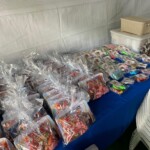Na sequência, foi servida a ceia, que contou com a distribuição de 500 marmitas, mil potes de sorvete para a sobremesa e 500 minirrefrigerantes. Também foram doados panetones, livros, 330 kits de banho, 200 kits de roupa, 100 cobertores e 500 kits de higiene pessoal.