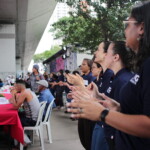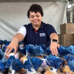 “Mais do que comida, do que roupa, panetone, mais do que kit de higiene pessoal: eu vim aqui te dizer que 2025 vai ser um novo rumo para sua vida. Hoje você está jantando aqui junto com a gente, em 2025 você estará em pé aqui do lado nos ajudando. Agora a pergunta é: quem cré nisso? Quem tem esse desejo? Então, Deus vai realizar na sua vida!”, determinou o Pastor Filipe.