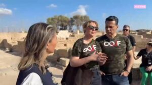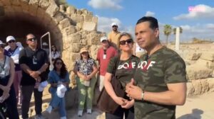 Na sequência, eles passaram pela pedra em que está escrito que Pôncio Pilatos – o governador romano que julgou e condenou Jesus à crucificação – morou em Cesareia, uma evidência arqueológica extremamente importante. Ela é uma das descobertas arqueológicas mais importantes relacionadas ao Novo Testamento. Inclusive, Josi Boccoli explicou que o local está mencionado na Bíblia, a arqueologia prova e a história conta.