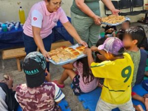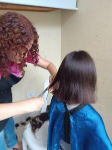 Por fim, as crianças participaram de um momento especial de cuidado, com corte de cabelo, penteados e um delicioso lanche, encerrando a ação com alegria e carinho.