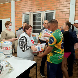 “A minha casa está cheia de água. Eu perdi meu guarda-roupa, meu armário, minha mesa e meu sofá. Essa cesta básica chegou em boa hora e vai me ajudar muito”, relatou Andreia Alves, uma das beneficiadas pela ação do Unisocial em Rio do Sul.