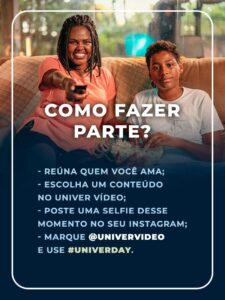 O UNIVER Vídeo está lançando um novo movimento que promete mobilizar milhares de pessoas em todo o País: o Univer Day. A proposta é simples, mas poderosa. Todo segundo sábado de cada mês, os assinantes e seguidores da plataforma serão incentivados a assistir a um conteúdo no UNIVER e compartilhá-lo de forma espontânea com amigos, familiares e nas redes sociais.