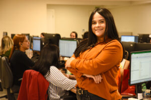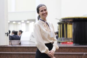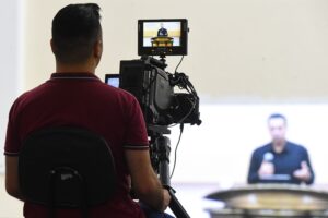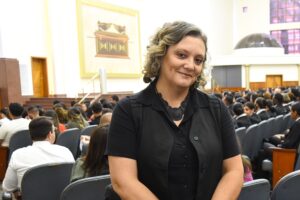 Já Juliana Jango Lourenço (foto abaixo), de 45 anos, que trabalha no setor de locação, se mostrava muito grata por estar entre os colegas do departamento participando do culto: “Estou muito feliz por poder participar desse momento junto com todos. Tivemos um ano com muitos desafios, mas Deus abençoou [tudo que fizemos]. Só temos que agradecer (…); que [2026] seja um novo ano de grandes lutas, mas com grandes vitórias. Essa é a nossa fé!”, determinou.