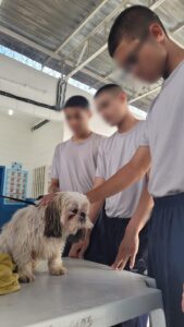 No final do mês de janeiro, o grupo Universal Socioeducativo (USE) de São José dos Campos (SP) realizou um workshop de banho e tosa com certificado, na Fundação CASA Tamoios.