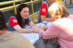 Assim, milhares de pessoas estiveram presentes às reuniões ocorridas durante todo o domingo. Antes de cada encontro, as que desejavam orientações – ou mesmo apenas serem ouvidas – foram atendidas pelos voluntários do DTC, a exemplo do ocorrido na Esplanada do Templo de Salomão (foto abaixo).