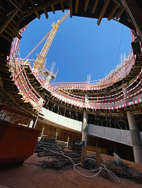 Com 35% dos trabalhos concluídos, uma das obras em andamento mais aguardada é a nova Catedral da Universal no Distrito Federal, que tem previsão de entrega para o final de 2022. O local encontra-se na fase de superestruturas – que compreende as armações acima da terra, como pilares, vigas, lajes.