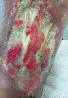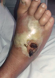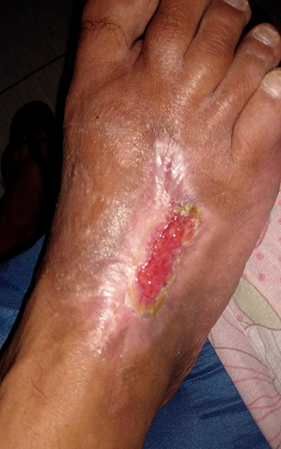 Por causa do acesso vascular no braço para fazer a hemodiálise, Roberto foi infectado por uma bactéria. “Ela foi para o meu sangue, se alojou em meu pé direito e causou uma ferida horrível por necrose (apodrecimento) que não fechava. Dava para ver os tendões e os ossos. Os médicos diziam que eu tinha só 1% de chance de cura e que o melhor seria amputar o pé.”