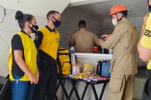 Voluntários distribuíram marmitas, refrigerantes, café, suco, pães e outros ítens a bombeiros, policiais militares, guardas municipais e agentes da Defesa Civil.