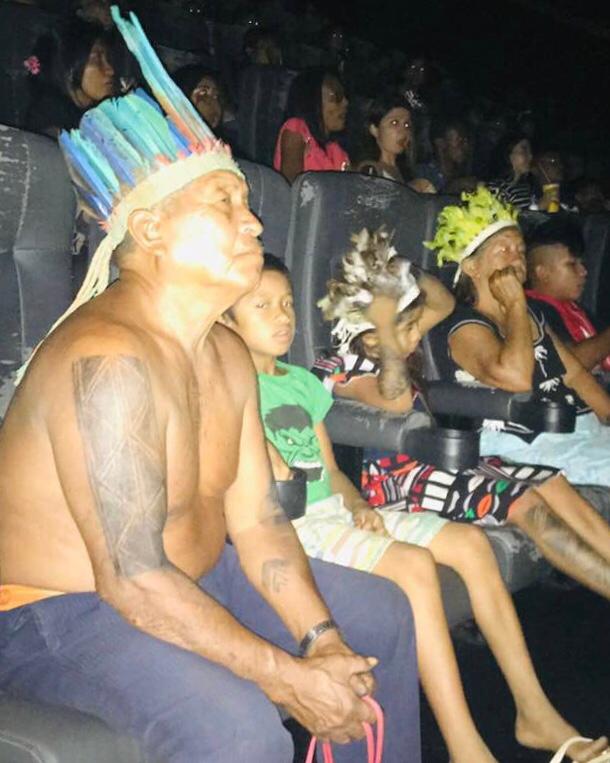 Muitos integrantes das aldeias Kumaru e Boa Esperança foram ao cinema pela primeira vez